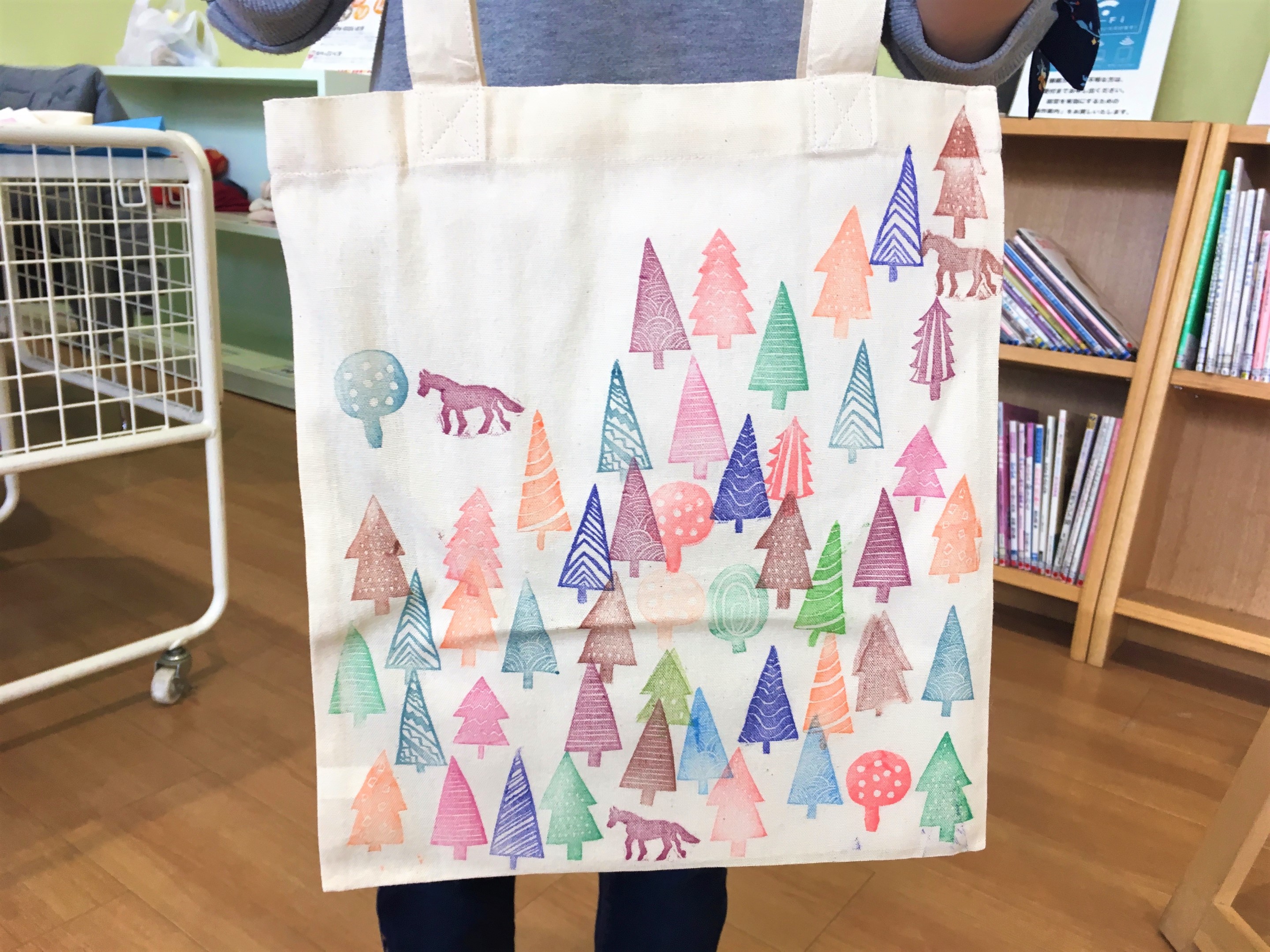 木や馬のスタンプを使ってオリジナルバッグをつくります。