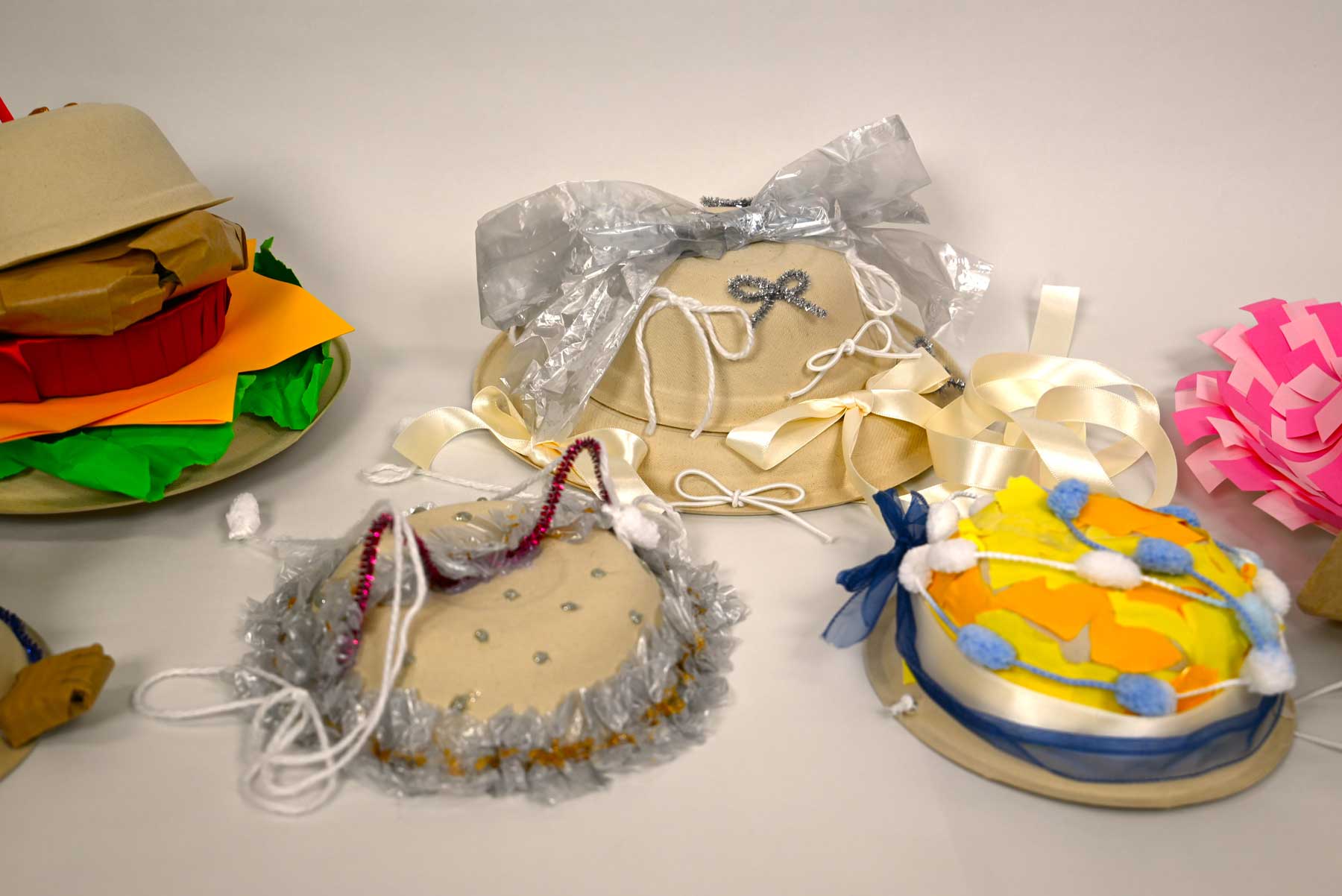 いろいろな材料を使って自分だけのぼうしを作ります。