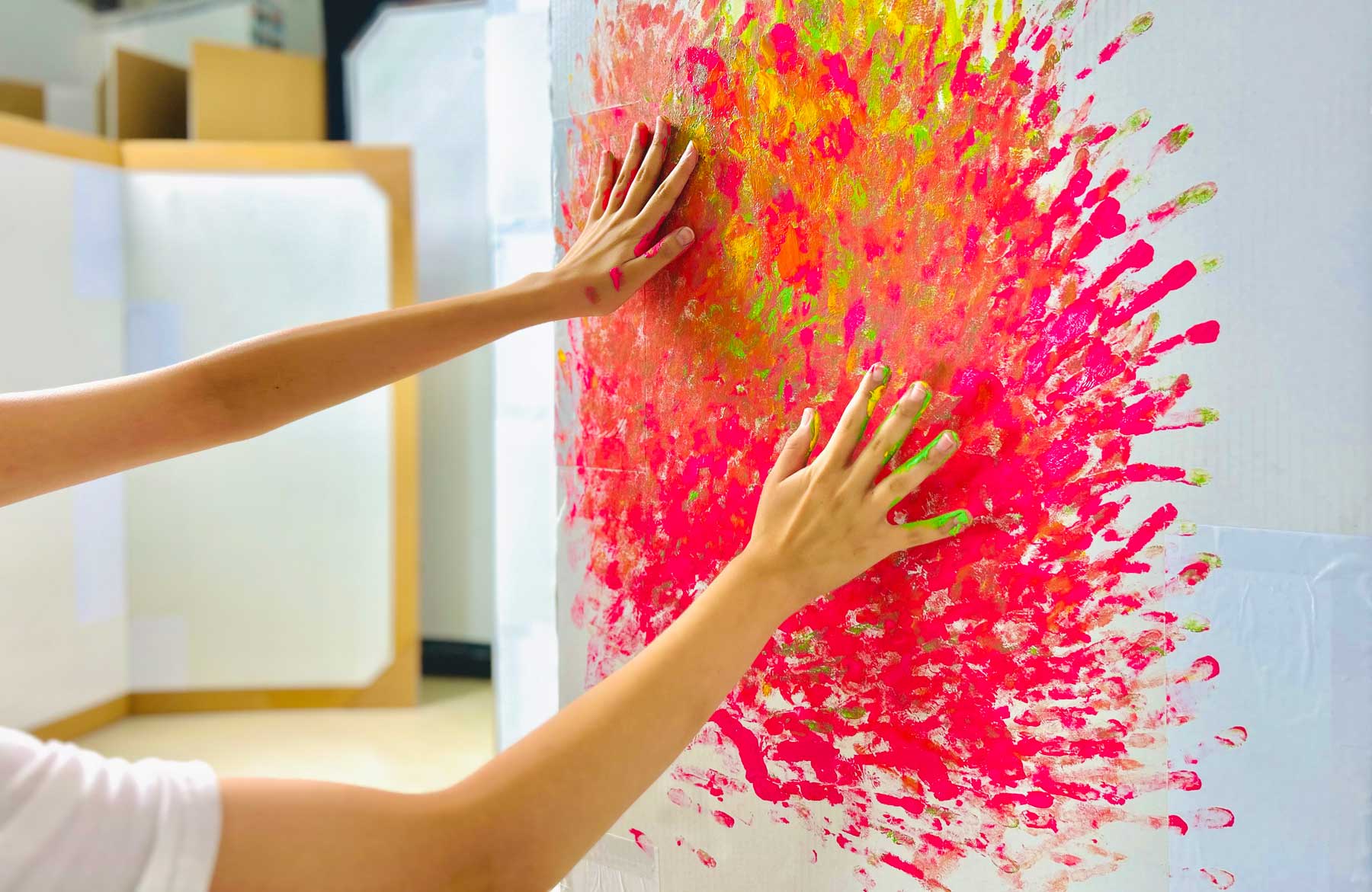 「びょうぶ」に指でペタペタえのぐをぬってあそぼう!